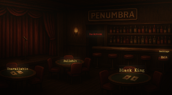 Penumbra is an attempt to translate a fun playing card game into a digital version for Godot Wild Jam #82, following the theme “unseen”. In the traditional game, most of the cards remain hidden throughout. The long term aim is develop a roguelike deck-builder with a horror spin, to be played against the House Penumbra.